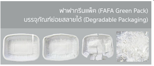 เห็นไหมครับว่านอกจากบรรจุภัณฑ์ฟาฟากรีนแพ็คจะเป็นมิตรกับสุขภาพและสิ่งแวดล้อมแล้ว ยังสามารถช่วยเพิ่ม มูลค่าให้กับผลิตภัณฑ์ได้ด้วย มาร่วมเป็นส่วนหนึ่งในการช่วยทำให้โลกนี้น่าอยู่ขึ้นโดยการเลือกใช้ บรรจุภัณฑ์ที่สามารถย่อยสลายได้กันเถอะ เพียงคนละไม้คนละมือก็สามารถรวมกันเป็นพลังที่ยิ่งใหญ่ได้